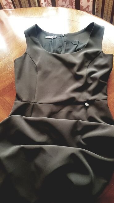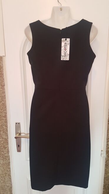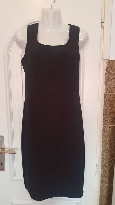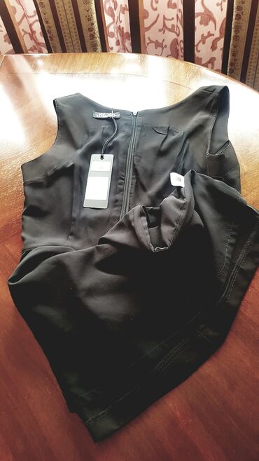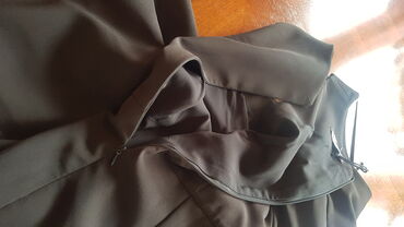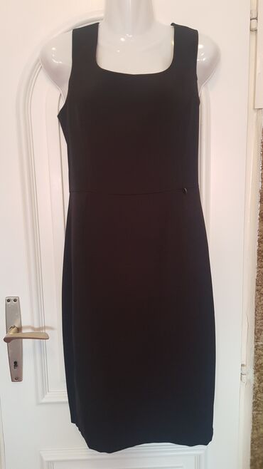 Elegantna večernja haljina – crna, duga, sa dramatičnim šlepom i visokim šlicem. - Kroj: sirena/suknja sa naborima napred, visoki otvor na butini, produženi asimetrični šlep sa strane. - Gornji de...