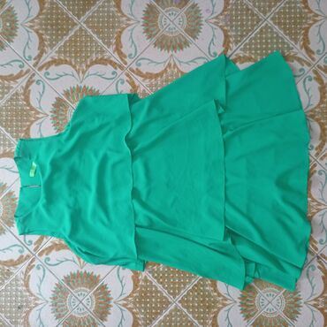 Ženska odeća – 4 komada (dimenzije i informacije sa slika) 1) Crvena košulja/haljina bez rukava - Odgovara: M–L - Dužina: 80 cm - Poluobim: 42–50 cm - Detalji: kragna sa naborima, kratki rukavi, k...2 500 RSD