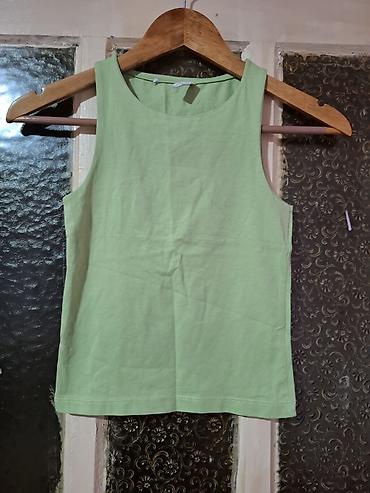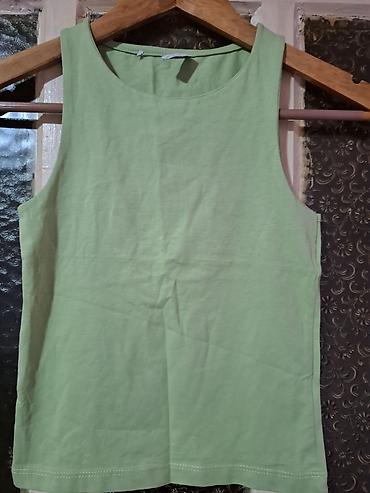 Zelena ženska majica bez rukava, poduplana u predelu grudi, idealna za leto da je nosite bez brusa. Zara ali je secena etiketa.