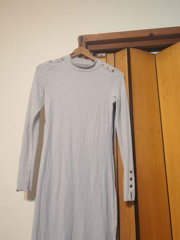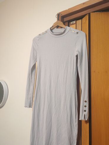Rebrasta haljina dugih rukava, svetlosive boje.