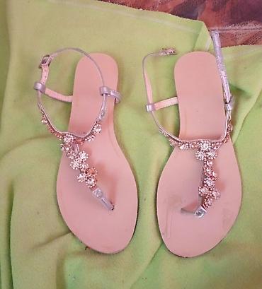 - Tip: sandale bez pete, otvoreni prsti, T-remen