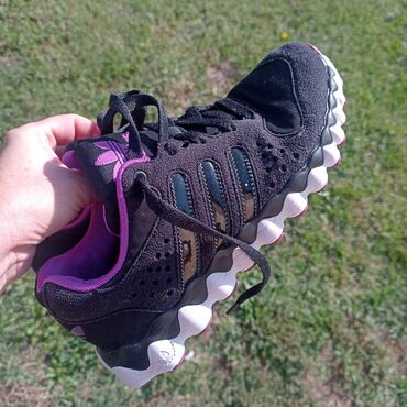 - Klasično pertlanje, ojačani paneli i tri sjajne Adidas pruge sa strane.