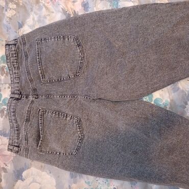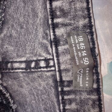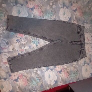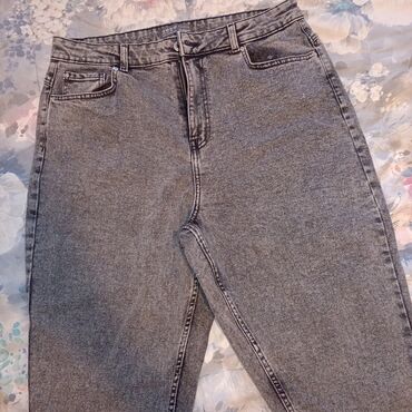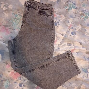 Ženske široke farmerke sa visokim strukom u svetloplavom, ispranom denimu. Model sa pet džepova i rupičastim/pocepanim efektom duž nogavica (prednji deo butina, kolena i potkolenice), plus sitni di...