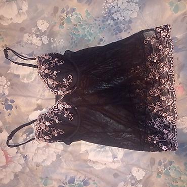 - Model 3: crni babydoll od providne mreže sa bogatim cvetnim vezom u roze tonovima na košaricama i na donjem volanu; tanke bretelice, ženstveni A-kroj.
