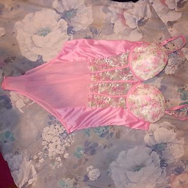 - Model 2: svetloružičasti babydoll od fine mrežaste tkanine, košarice sa diskretnim tačkicama i čipkanim ivicama, tanke duple bretelice, lepršava suknjica sa volanom i sitnim šljokicama uz rub.