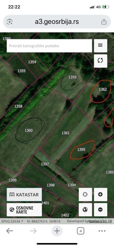 Na skici se vidi parcela obelezena sa crnom olovkom, ali ako želite proširenje moguće je kupiti i ove parcele sto su obelezene sa crvenom olovkom.