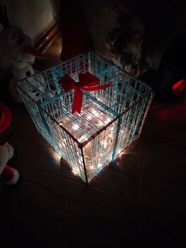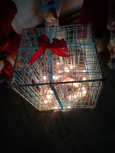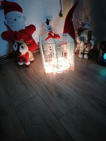 Dekorativne figure Deda Mraza – set od 2 komada - Veća figura u belom kostimu: bogato ukrašena, sa kapuljačom od veštačkog krzna, srebrnim detaljima i šljokicama; u ruci drži providni “ledeni” žez...
