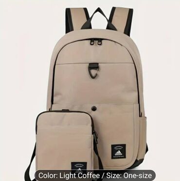 Praktičan za školu, posao, putovanja i svakodnevnu upotrebu; dimenzije odgovaraju formatu A4 i većini 15.6" laptopova u futroli. U jednoj od fotografija prikazana je i usklađena torbica manjeg formata (crossbody).