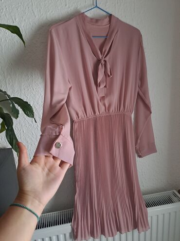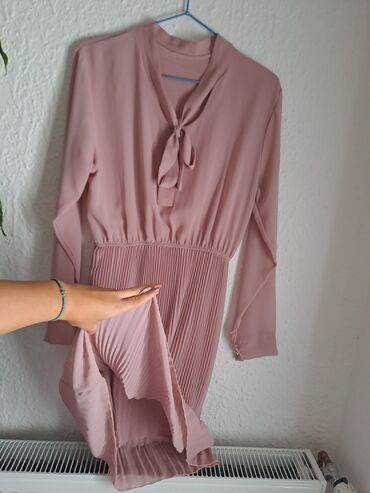 Univerzalna haljina, od S do XL, ima elastina. Radjena je vizuelno kao suknja i kosulja, cela je lepršava i lagana. Sa postavom, tako da nista nije providno. Duga do blago iznad kolena. Za više informacija kontakt!