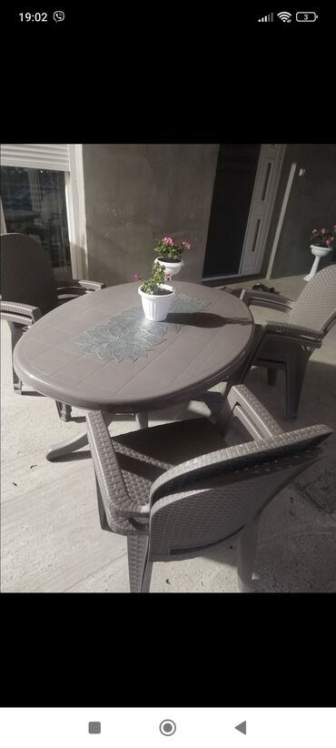 Baštenski set – sto i 6 stolice - Materijal: plastika sa reljefom u
