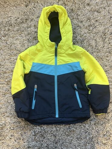- Jakna sa kapuljačom u kombinaciji neon žute, tirkizne i tamnoplave boje