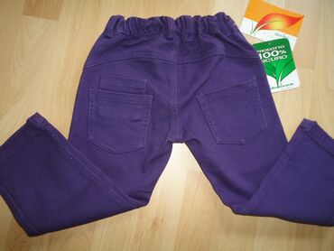 Dečije pantalone C&A, ljubičaste boje. - Veličina: 9Y/128 (etiketa prikazuje 9Y/A) - Kroj: uske nogavice, srednji struk - Struk: elastičan sa naborima; ima petlju za kaiš - Kopčanje: dugme napred ...