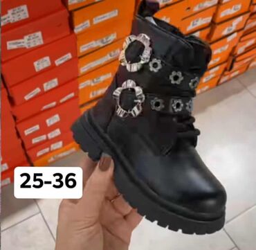 - Model 3: crne gležnjače sa dva kaiša i srebrnim ukrasnim kopčama, čvrst profilisan đon. Veličine: 25–36.
