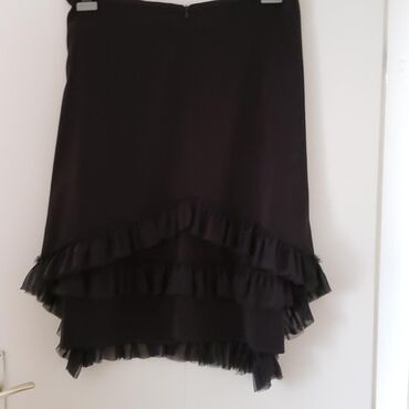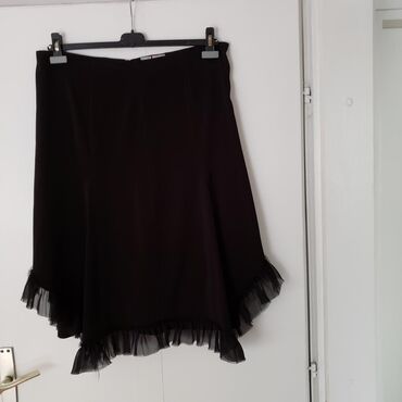 Elegantna prelepa crna suknja, veličine oko 42-44, kupljena u Italiji. Kao nova je. Dobila sam je, ali mi je mala i samo stoji bez veze. A bilo mi je žao, toliko mi se sviđa i sve mislim da ću možda smršaviti. Ne gužva se. Postavljena je. Boja je crna, nigde izbledela ili slično. Suknja je za 10+. Pogledajte dimenzije: Obim u struku - 96 cm. Dužina - 68 do 77 cm.