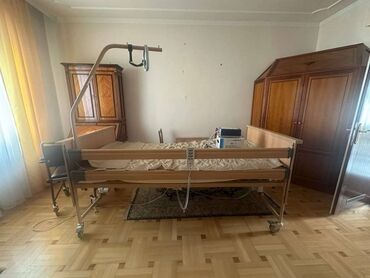 - Električni krevet na točkićima sa kočnicama, drvene bočne ograde i uzglavlje/uznožje.