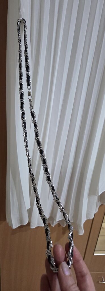 Crna satenska košulja sa dugmadima i mašnom/vezivanjem u struku. - Materijal: glatka, sjajna satenska tkanina sa elegantnim odsjajem. - Kroj: klasična košulja sa kragnom, dužim rukavima i širokim...2 500 RSD