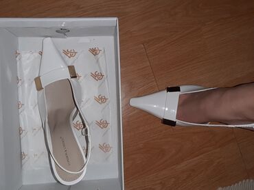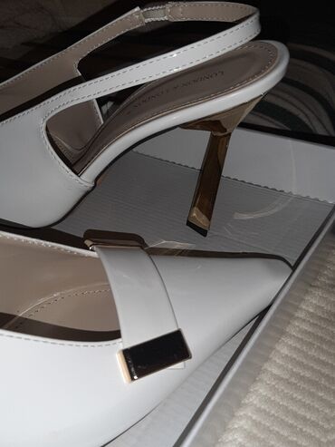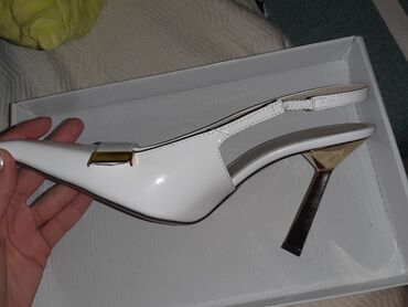 Lakovana kožaPotpuno nove predivne bele štiklice sa zlatnim detaljima, broj 39. Nikada nošene. Dolaze upakovane u originalnoj kutiji.