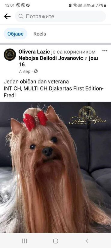 Maltipoo štenci ekstra kvaliteta i boja više inf naPrelepi štenci jorkšir terijera sa šampionskim poreklom na prodaju. Oštenjeni 16.06.2023, vakcinisani. U ponudi dva mužjaka i ženka.