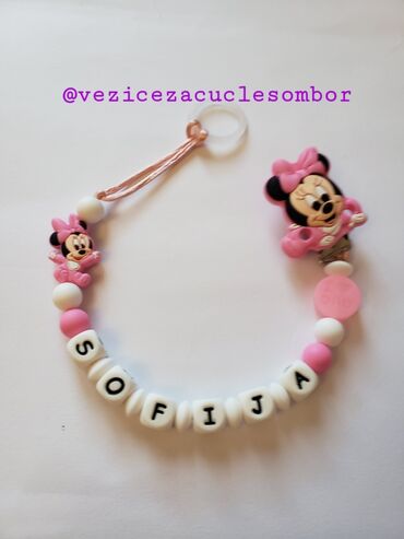 Silikonski lancic za dudu ili glodalicu sa Dizni figurom I klipsom i imenom po vasoj zelji. Obradujte vase malisane ovim prelepim poklonom.