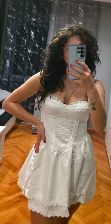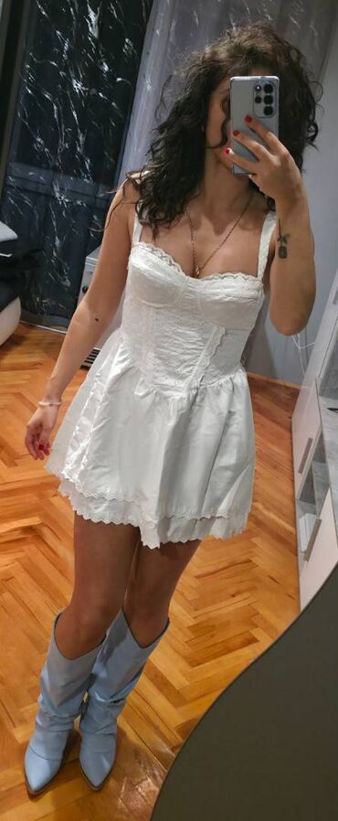 - Model: mini/kratka haljina sa naglašenim strukom i A-krojem