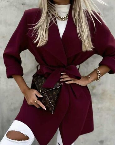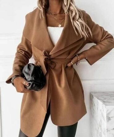 - Model: kratki kaput/plašt do sredine butine, bez kopčanja, vezuje se širokim pojasom u struku