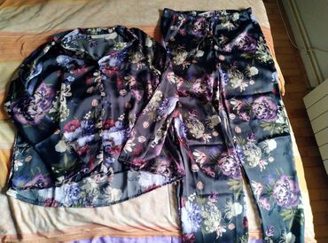 Šareni zeleno crni komplet kao ZARA S/M Savrsen kimono i pantalone komplet Gornji deo ima kragnu i pojas za vezivanje Pantalone su na gumu i umaju dzepove Materijal poliester koji lepo pada i ne g...