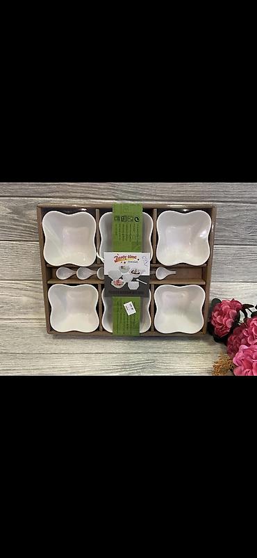 Napomena: Na fotografijama su prikazani različiti dizajni kompleta sa po 6 posudica i pratećim kašičicama.