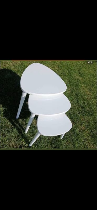 - Moderni set tri stolića koji se uvlače jedan ispod drugog (različite visine).
