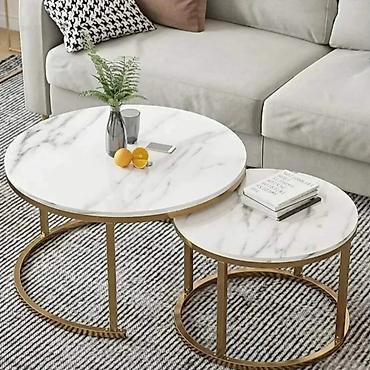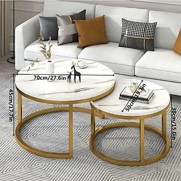 Elegantna kombinacija dva stočića različitih dimenzija, praktično uklopljena tako da se manji može delimično uvući ispod većeg. Idealno za dnevni boravak, lounge ili recepcije.