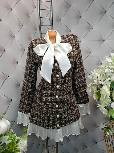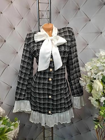 Elegantna mini haljina/sako-haljina od tvida sa satenskom mašnom