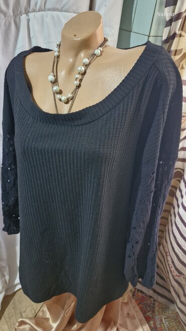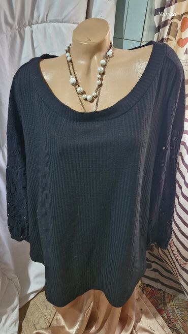 5XL SHEIN 600din CRNI ELEGANTAN DŽEMPER SA ELASTINOM VIDI RUKAVE