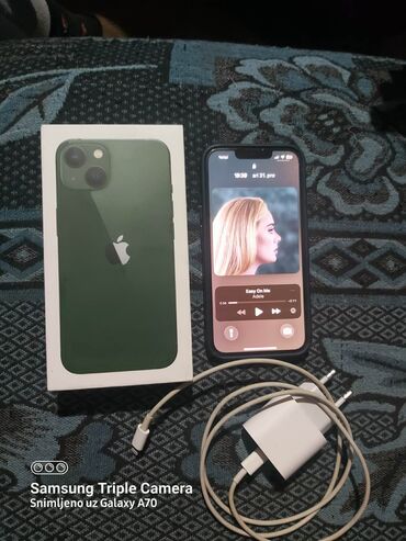Apple iPhone 13, zelene boje, sa kutijom i pratećom opremom.