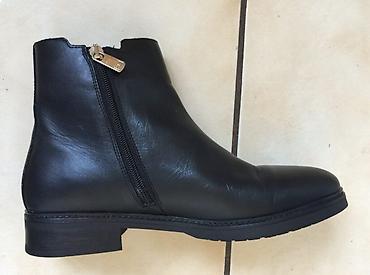 Crne duboke cizme Nine West, prava koza. Broj 40, moze i 40,5. Veoma udobne. Spolja su odlicno ocuvane bez ostecenja, dok su se iznutra obe oljustile na nekim mestima (uslikano na poslednjoj slici,...