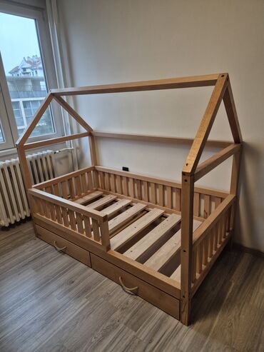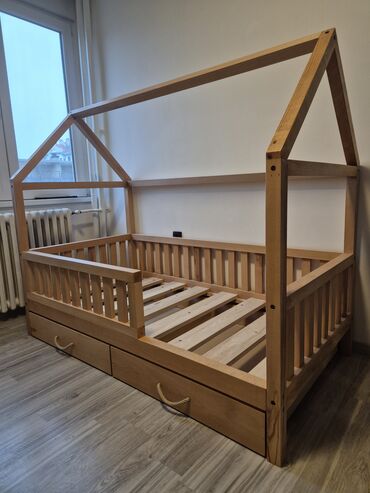 Dimenzije prostora za dušek: približno single/twin format. Odličan izbor za dečiju sobu, spaja funkcionalno odlaganje i maštovit dizajn.