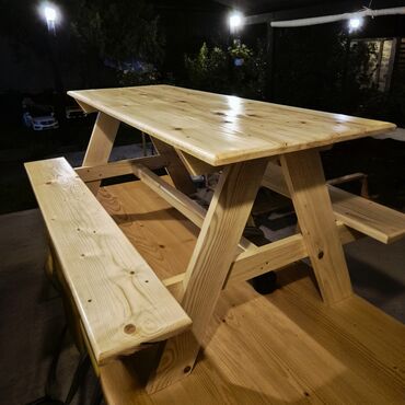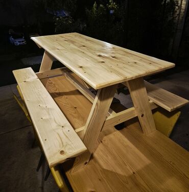 Drvena baštenska/piknik garnitura sa integrisanim klupama za decu ✨️ dimenzije ovog stola je za 6 malisana.