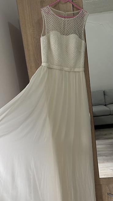 Duga elegantna haljina u boji slonovače.Kupljena za vencanje,ali nije