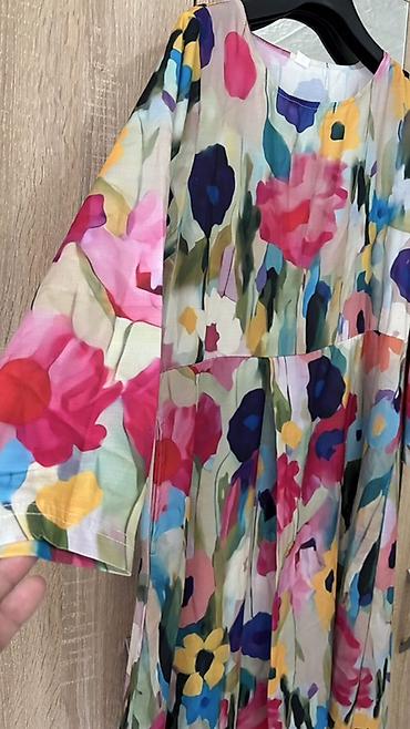 - Dizajn: živopisan višebojni print inspirisan akvarelom – nijanse roze, žute, plave, zelene i tamnoplave na svetloj osnovi.