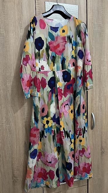 Haljina sa cvetnim akvarel printom - Model: midi haljina A-kroja sa
