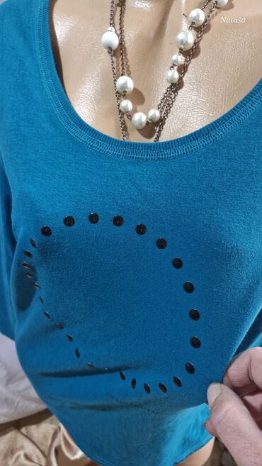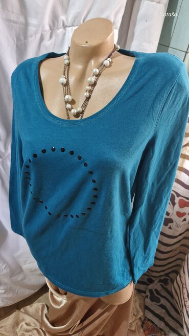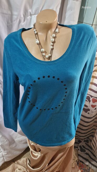 Ženska lagana bluza/džemper od tankog pamučnog trikotaža u tirkiznoj boji. - Model: ravno krojena bluza sa dugim rukavima - Izrez: širi, čamac (boat neck) - Donji rub: široka rebrasta ranfla koja ...