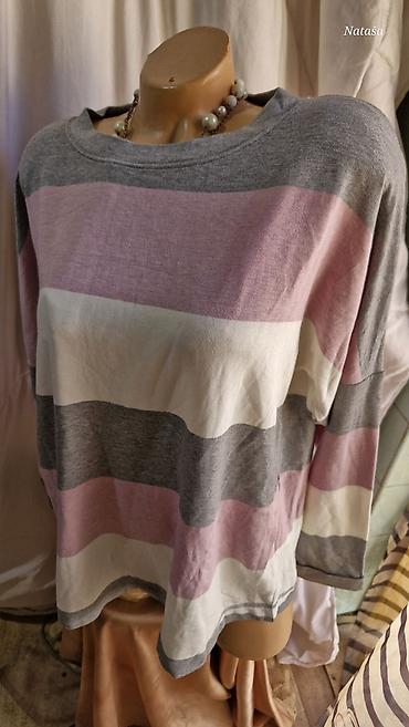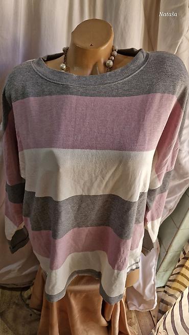 Ženska majica dugih rukava sa printom - Kroj: blago A-linija, udobno opuštena silueta koja lepo pada preko kukova - Izrez: okrugli, sa diskretnim paspulom - Rukavi: dugi, prugasti sivi-beli - Diza...