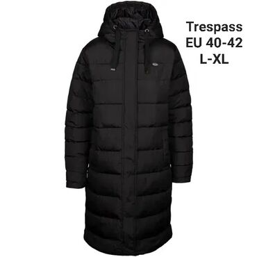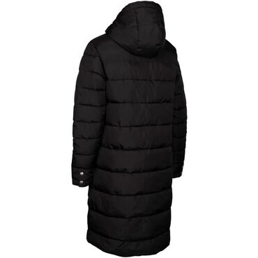 Ženska zimska jakna Trespass – veličina EU 38 / M. - Boja: crna - Model: duža, puffer kroj sa horizontalnim prošivima - Kapuljača: integrisana, duboka - Zatvaranje: prednji rajsferšlus punom dužin...
