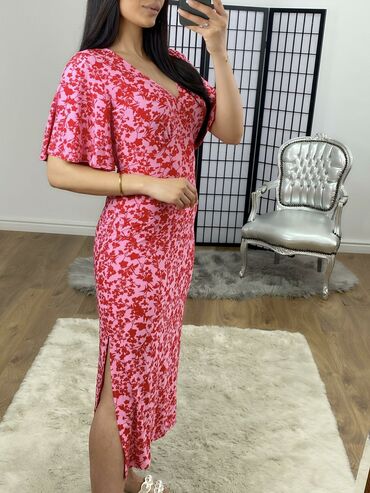 Ženska odeća – više modela 1) Haljina Just Woman, veličina M/L - Floralni print, V-izrez, kratki rukavi - Elastičan struk sa trakicama za vezivanje - Dužina: 100 cm - Poluobim: 32–60 cm - Cena: 10...1 500 RSD