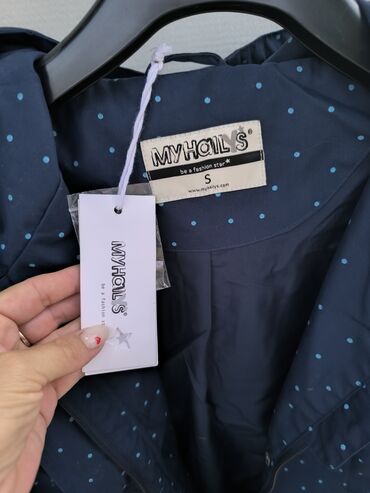 DugmadŽenska jakna brenda My Hols, teget boje sa belim tufnama po celoj površini. Karakteriše je kapuljača koja pruža dodatnu zaštitu. Jakna ima centralno kopčanje na rajsferšlus i dugmad u boji drveta, kao i svetloplave učkure za podešavanje kapuljače. Praktičan izbor za svakodnevno nošenje u prelaznim periodima.