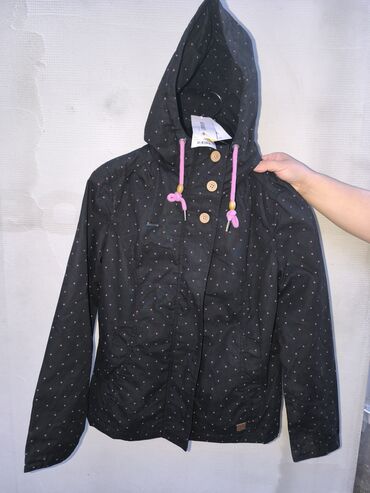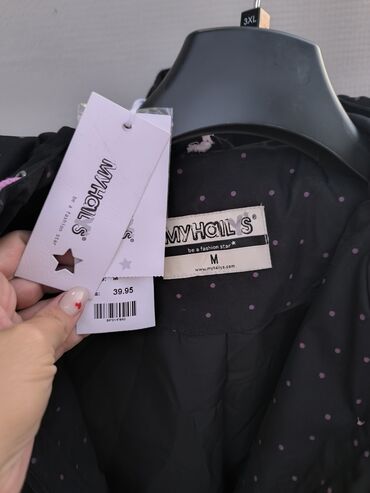 Ženska jakna brenda Myhails u crnoj boji sa sitnim tufnama, idealna za prelazni period. Jakna poseduje kapuljaču sa ružičastim pertlama i drvenim dugmićima na prednjem delu za dodatni šarm. Unutrašnjost jakne je takođe crna sa ružičastim tufnama, što joj daje atraktivan izgled. Ova jakna je praktičan izbor za svakodnevno nošenje i lako se kombinuje.