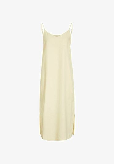 Ženska midi haljina u bež boji, izrađena od satena. Haljina ima tanke