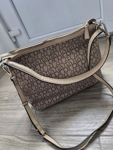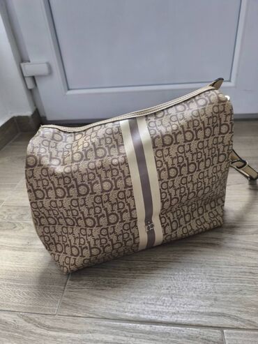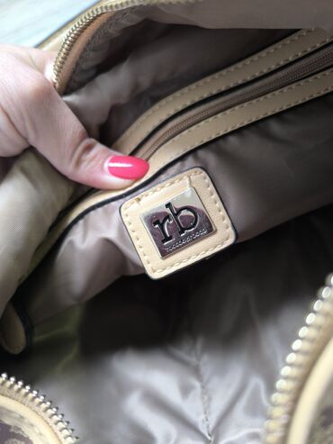 Ženska torba za rame sa prepoznatljivim "rb" monogramom brenda roccobarocco. Torba je izrađena u svetlosmeđoj boji sa monogramom i ima braon i bež prugu po sredini, što doprinosi elegantnom izgledu. Unutrašnjost torbe je prostrana i obložena materijalom svetle boje, pogodna za nošenje svakodnevnih potrepština. Poseduje metalni logo "rb roccobarocco" unutar torbe. Zatvaranje torbe je na rajsferšlus, a ručka je podesiva i može se nositi preko ramena ili unakrsno preko tela. Idealan je izbor za svakodnevnu upotrebu, pružajući praktičnost i stil.