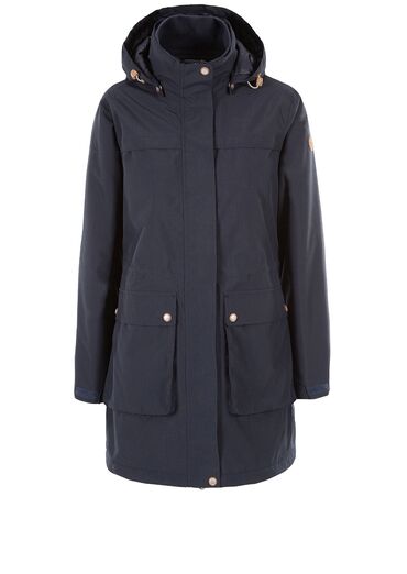 Ženska jakna Trespass – veličina EU 42 / XL - Model: duga softshell parka u tamnoplavoj boji - Materijal: vodootporan i vetrootporan softshell; unutrašnjost sa mekanom, toplotnom postavom (fleece)...