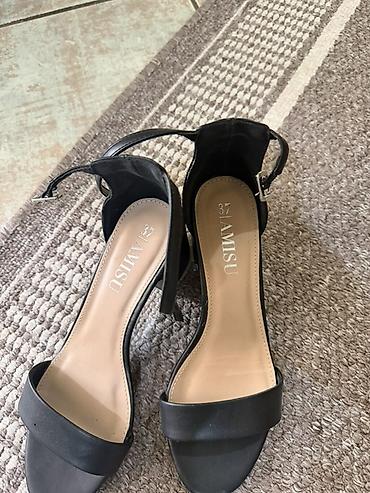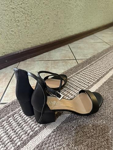 Amisu sandale – crne i svetlo bež boje elegantne, sa stabilnom blok petom. - Veličina: 37 - Cena: 2.200 din - Dizajn: otvoreni prsti, široka prednja traka, tanka kaiš-traka oko zgloba sa meta...