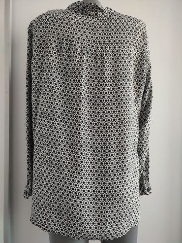 ZARA ženska bluza/tunika sa dugim rukavima. - Boja: crna - Kroj: V-izrez, struk se blago spušta i prelazi u prošireni, nabrani donji deo (peplum/razvijen kroj) - Kopčanje: prednji red sa 5 kontrast...