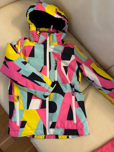 Dečija ski jakna - Veličina: 140 (etiketa vidljiva na fotografiji) - Spoljašnji materijal: vetrootporan, sa visokom prozračnošću. - Topla postava u kontrastno roze boji - Fiksna kapuljača sa pod...